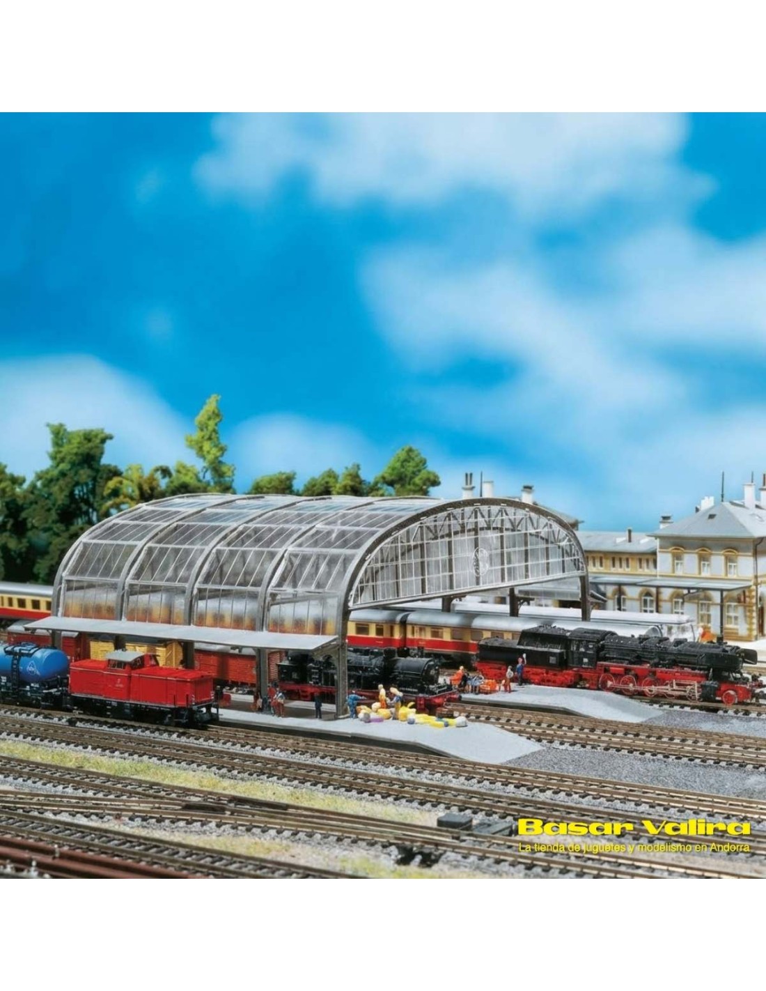 Aquest andana amb vidriera és una peça arquitectònica elegant per a estacions clàssiques. Enforteix la identitat visual dels primers ferrocarrils.
