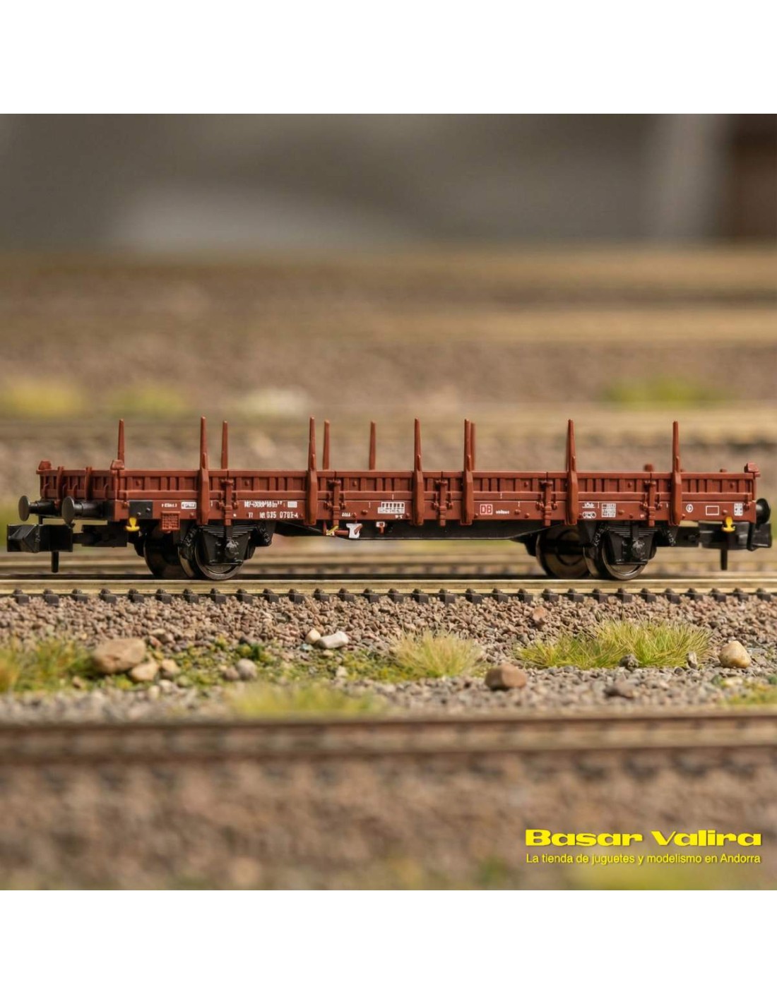 Vagó de mercaderies amb estakes giratòries que millora el realisme en moviments ferroviaris. És ideal per transportar càrregues voluminoses com fusta.