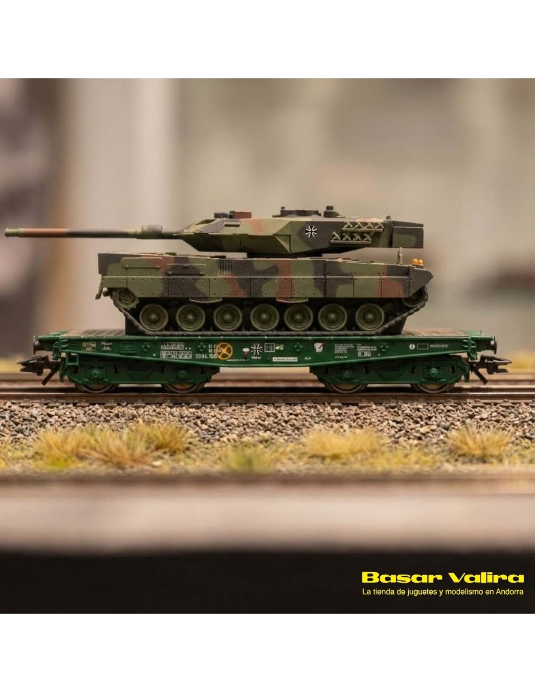 El vagó pla militar Märklin 48870 amb tanc Leopard aporta una estètica contemporània i detallada al modelisme ferroviari. Perfecte per a composicions de transport militar modern amb un impacte visual notable.